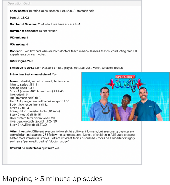 Assisted by the content team, and working closely with our Education Specialist, I set about studying the shows we’d be using for V2, looking for patterns or structures that could be utilised. The full study can be viewed here.
