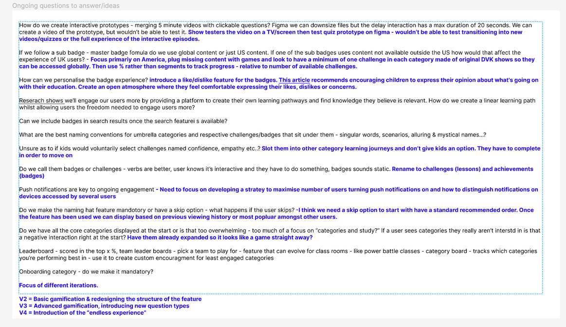During the ideation phase when questions arose that I couldn’t answer straightaway or I wasn’t sure about the feasibility, I jotted them down and reached out to relevant teams to help me answer them.