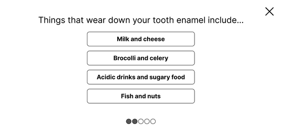 The landscape quiz experience was also out as quizzes were constructed on a web-based platform, and lacking web developer resources for this project, we had to use the existing web template and keep the quiz experience as portrait.