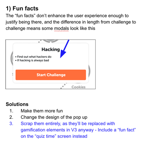 However, despite categorising some issues as severe, we proceeded with the launch without fixing them, the most severe being no intuitive way to actually exit the quiz!